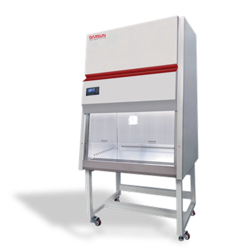 Class II Biosafety Cabinet with airflow: 30% exhaust, 70% recirculation loop Meets Pharmaceutical with medical device registration and production license Outer shell made of high-quality cold-rolled steel with electrostatic spray coating; three sides of the operational area are formed with integrated stainless steel; internal parts feature 10 mm large rounded corners for easy cleaning Dual HEPA filters with ULPA-level efficiency (≥99.9995% at 0.12 µm), using partition-free borosilicate glass fiber membrane High-quality, low-noise fan with automatic speed control; features high-sensitivity breeze speed sensor for real-time, pressure-free wind speed monitoring Custom-developed software with national software; LCD screen shows temperature, airflow, and other parameters; password-protected settings with blue screen digital display to prevent misoperation Filter alarm: Real-time barcode display for filter life tracking, with sound and light alarms to prompt Equipped with upper and lower limit alarm system; sound and light alerts activate when the glass door exceeds or drops below set positions Fully enclosed working area maintained under negative pressure on all sides to ensure zero leakage and maximum cleanliness Integrated sliding door can be positioned freely; UV lamp functions only when the window is fully closed 6 mm thick safety-tempered glass used for the front window door